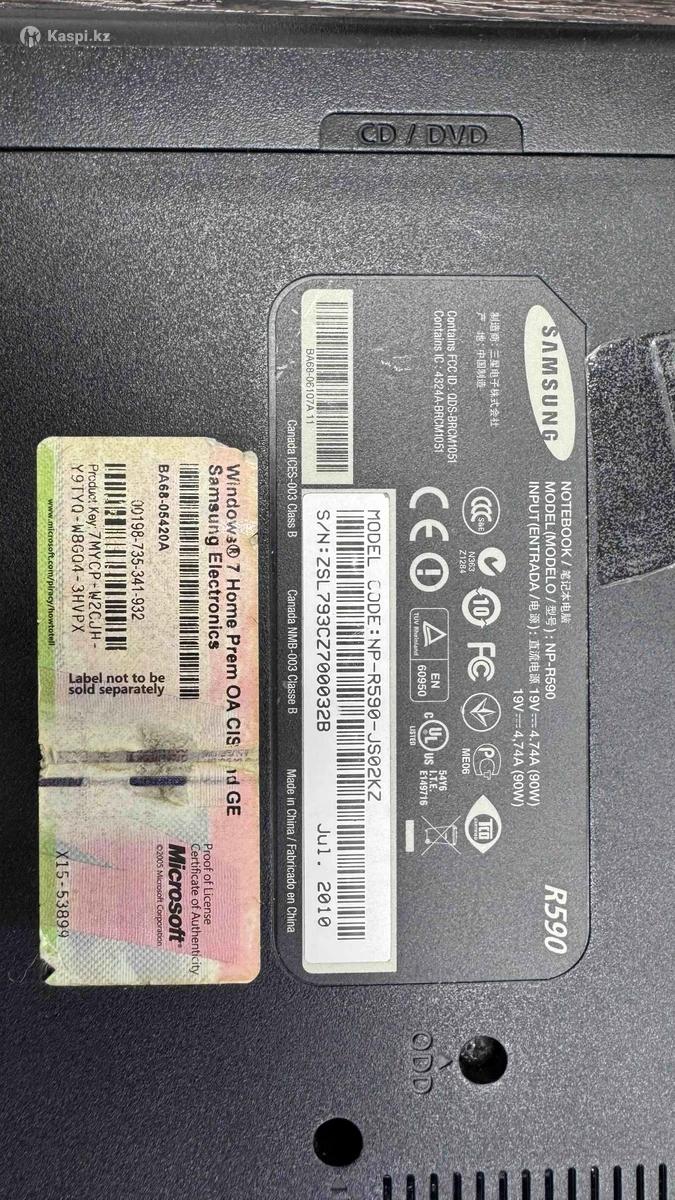 Продам ноутбук Samsung NP-R590 на разбор, но он также полностью в рабочем состоянии, при желании можно пользоваться. Подойдёт для интернета, фильмов, учёбы и офисных задач. Характеристики: Windows 7 Professional (64-bit) Intel Core i3 M350 — 2.27 GHz Оперативная память: 4 GB Экран 15.6″ Wi-Fi, Bluetooth, веб-камера Зарядное устройство в комплекте Состояние: Полностью включается и работает Есть царапины в зоне тачпада (видно на фото) Отсутствуют 3 клавиши на клавиатуре Ноутбуку около 10 лет В подарок - сумка для ноутбука. Подойдёт как недорогой ноут для базовых задач или как второй компьютер. Самовывоз / проверка при встрече возможна. Цена: 35 000 тг (разумный торг)