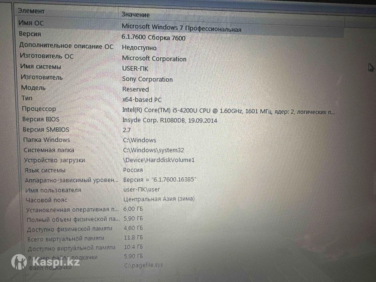 Ноутбук Sony VAIO Core i5 / 6 ГБ RAM / рабочий Продам ноутбук Sony VAIO в рабочем состоянии. Характеристики: •Процессор: Intel Core i5-4200U •Оперативная память: 6 ГБ •Система: Windows 7 Professional (64-bit) •Производитель: Sony •Подходит для работы, учёбы, интернета, офисных программ Состояние: •Полностью рабочий •Включается, не зависает •Использовался аккуратно •Есть зарядное устройство