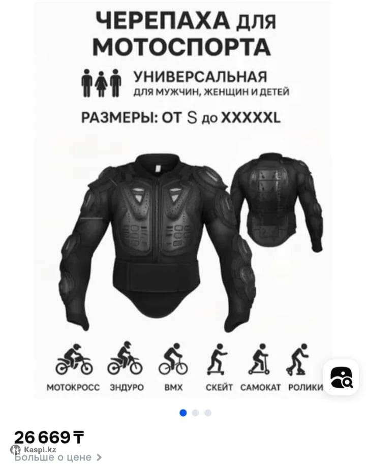 Продам мотозащиту, моточерепаха. Новые, не разу не одевали. Размеры 3xl и М. На озоне 26000 тг стоят.
