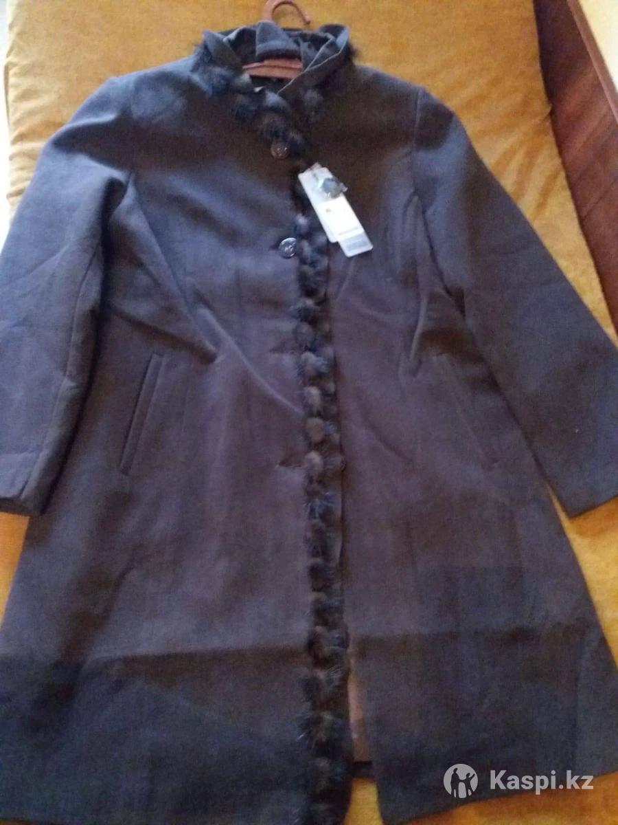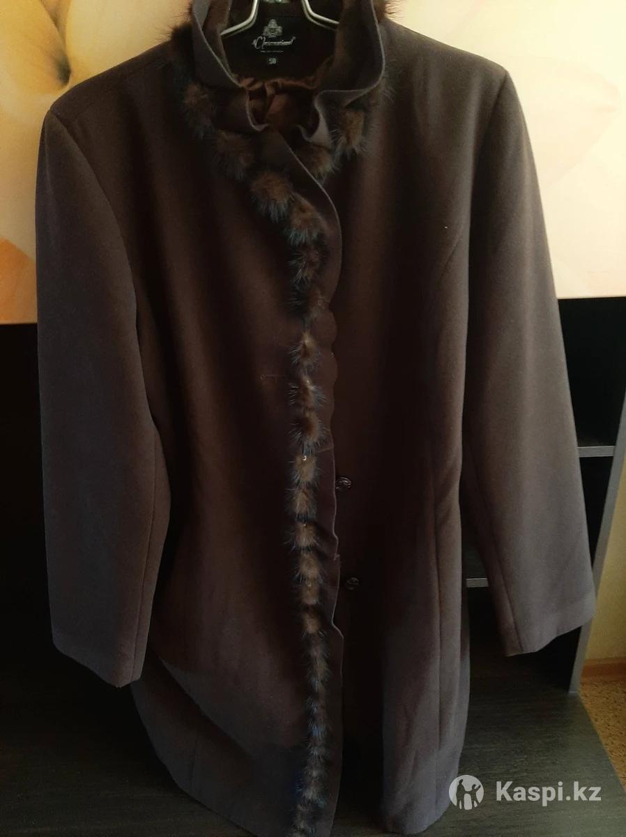 Кашемировое Новое Пальто с Норковой отделкой ,цвет кофе, 50-52размер.