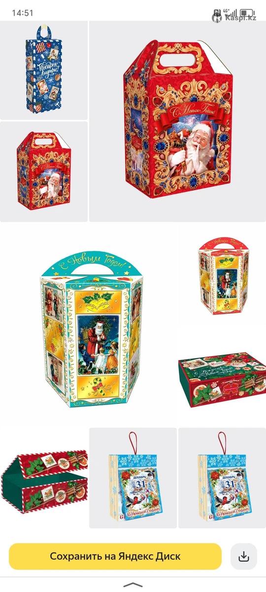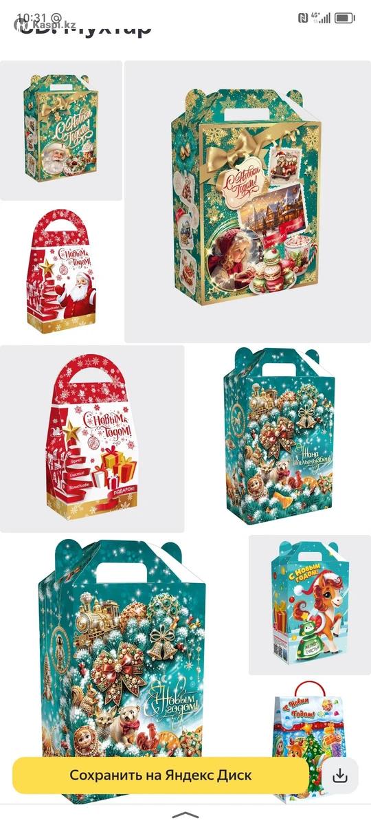 Новогодние упаковки и подарки. Очень много видов упаковок. По всему Казахстану есть доставка. Все документы предоставляем.