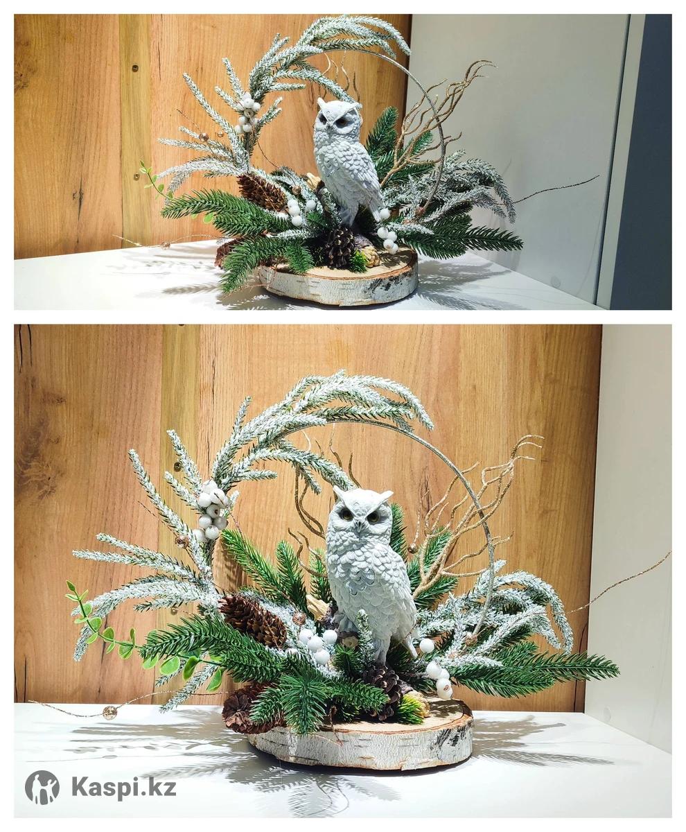 Новогодний декор композиция Сова ручная работа