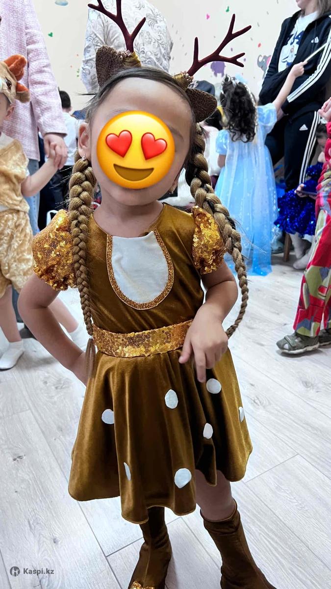 Продам костюм олененка , ободок и платье, чулочные сапожки . Подойдет на размер 92, 98, 104. ( девочкам 3-4 года ) один раз на утренник одевали. Сшили на заказ.