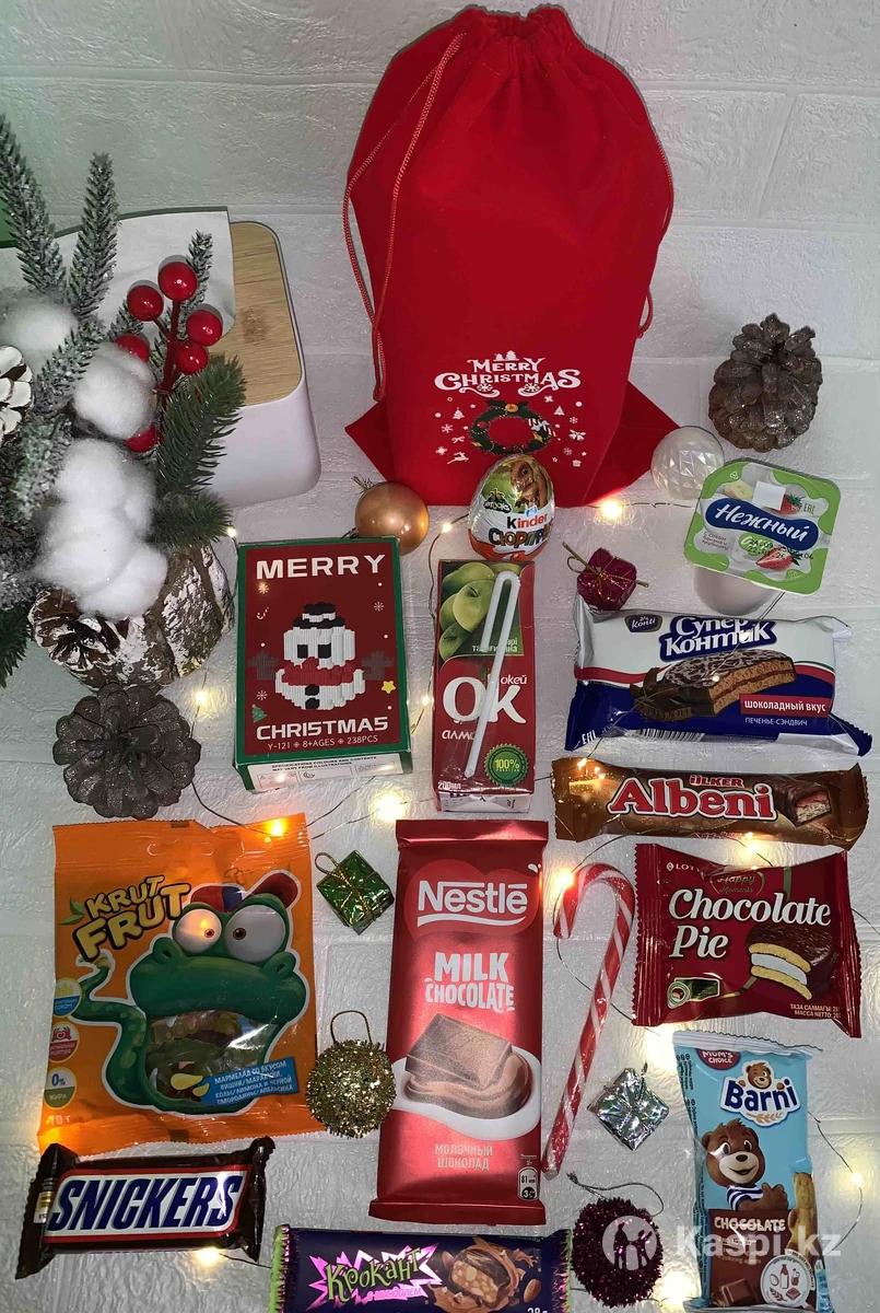 ✨🎄Сладкий набор 2025 🎄✨ Посмотрите, какой красивый и насыщенный набор я подготовила! Все как на фото — большой красный мешочек Merry Christmas и много вкусных сладостей внутри 🍫🍭 Оформлен очень ярко и празднично — идеальный подарок для детей, племяшек, воспитателей, учителей или коллег ❤️ 💸 Цена: 5000 📍 Алматы 📩 Пишите в личку — упакую и подготовлю ваш подарочек 🎁✨