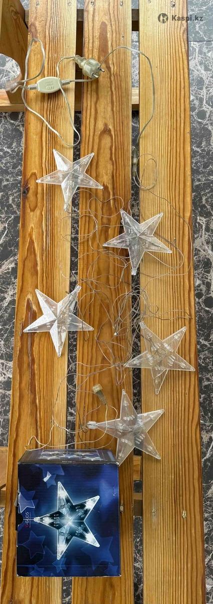 Гирлянда - светодиодные звезды в хорошем состоянии. Техническое описание на 4 фото. Есть небольшой скол на одной из звезд (см. фото 7).