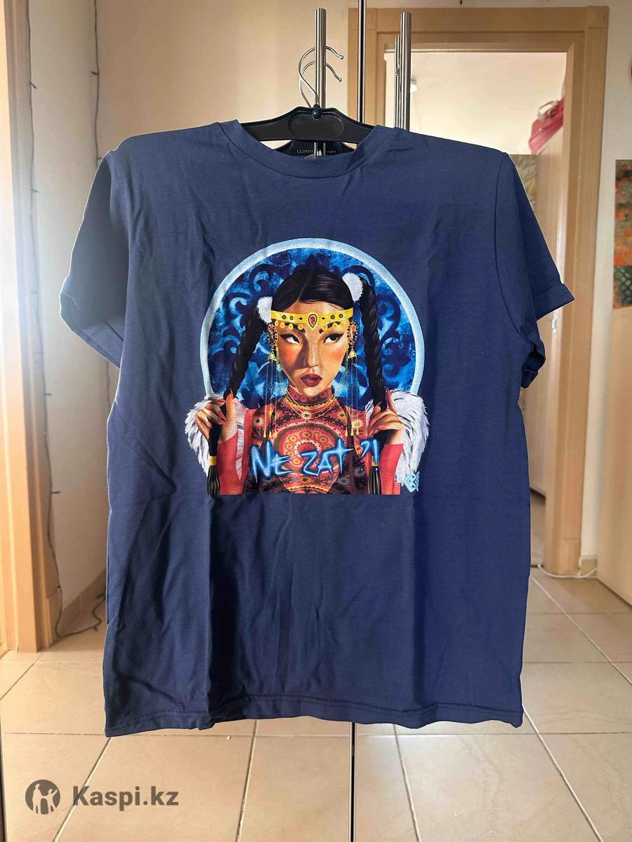 Новые футболки оверсайз из натурального хлопка. При стирке не садятся. С казахскими современными принтами, яркие, легкие на лето и весну. Размер с, м.