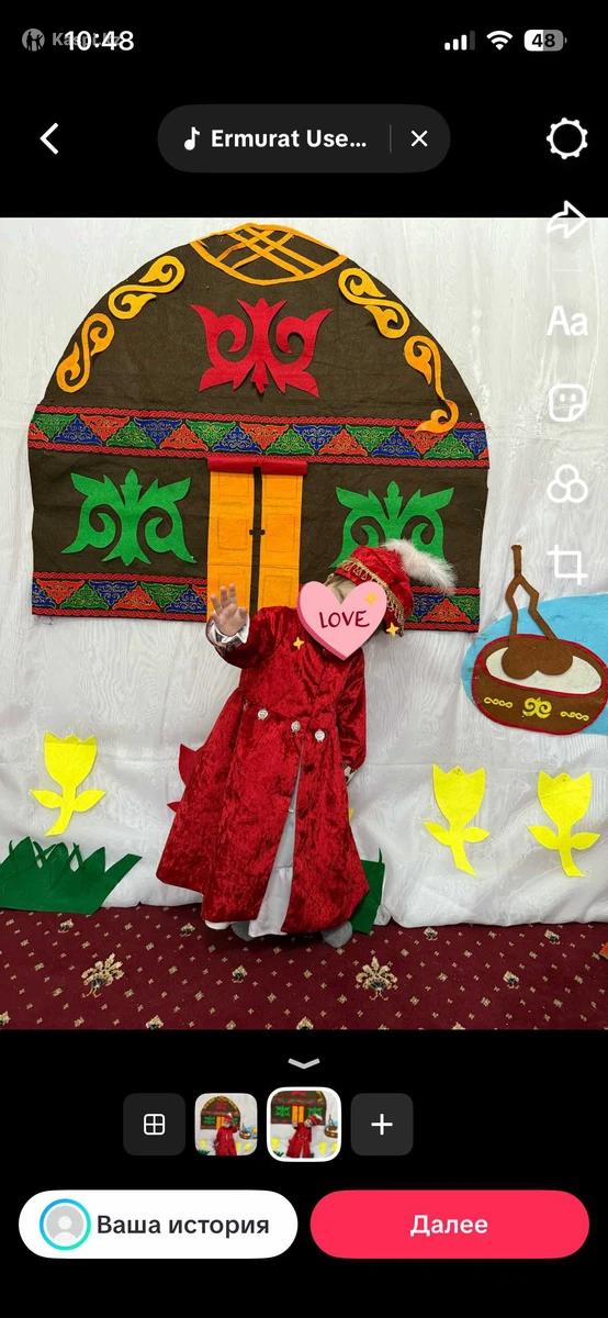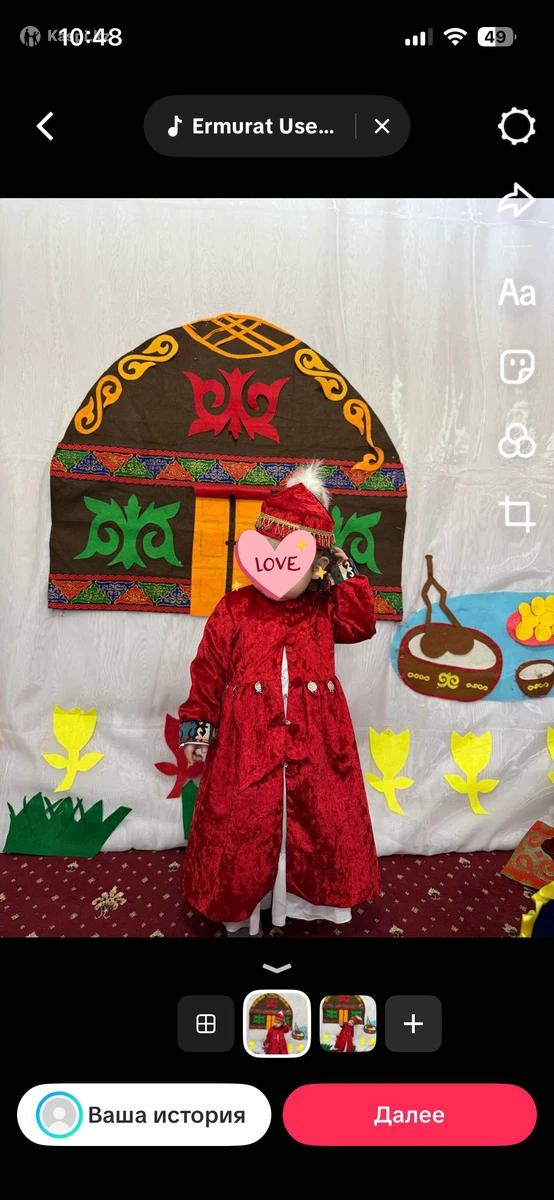 Новые 2 национальных платьев, шапан тюбетейка с укі , белое платье . Размер первого платья 2-3 года , размер второго 3-4 года , каждая по 10 тыс