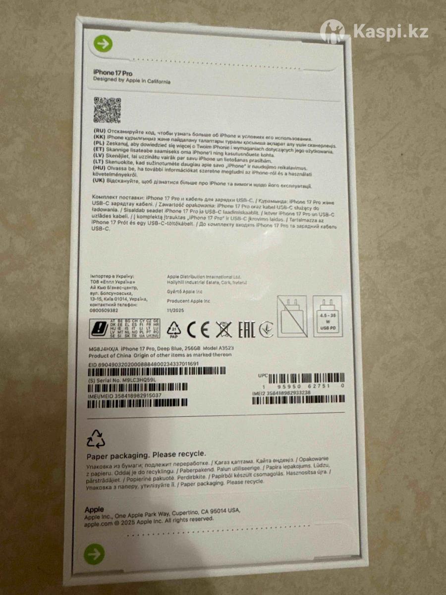 Срочно!Продам абсолютно новый айфон 17 про 256 гб в синем цвете. Брали в подарок, но не понравился цвет. Продаю срочно реальному покупателю торг
