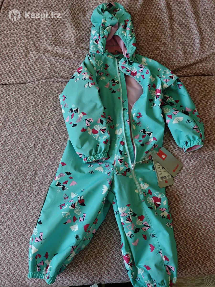 Размер 98м на 3 года примерно. Комбинезон без утеплителя в бирюзовом цвете с принтом из бабочек и мотыльков ТМ Geburt. Приталенная модель из мембранной влагонепроницаемой и ветрозащитной ткани. Удлиненная молния облегчит процесс надевания, внутренняя ветрозащитная планка и капюшон защитят от пронизывающего ветра. Подклад комбинированный: флис на внутренней части воротника, остальное-гладкий полиэстер. Легкий комбинезон для комфортного отдыха и прогулок. - Ветронепроницаемая и влагозащитная ткань - Внутренняя ветрозащитная планка; - Удлиненная молния с защитой подбородка от защемления; - Съемный капюшон анатомической формы на кнопках, присборенный на резинку; - Эластичные манжеты на рукавах и брючинах; - Внутренние части манжет в рукавах обработаны флисом; - Подклад из гладкого полиэстера; - Регулируемая утяжка по спинке; - 1 нагрудный карман на молнии; - Светоотражающие элементы; - Силиконовые отстегивающиеся штрипки на брючинах; - Внутренняя размерная этикетка с местом для имени.