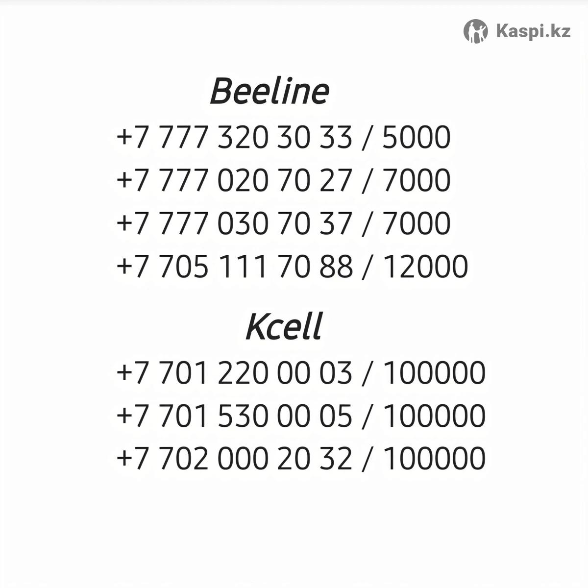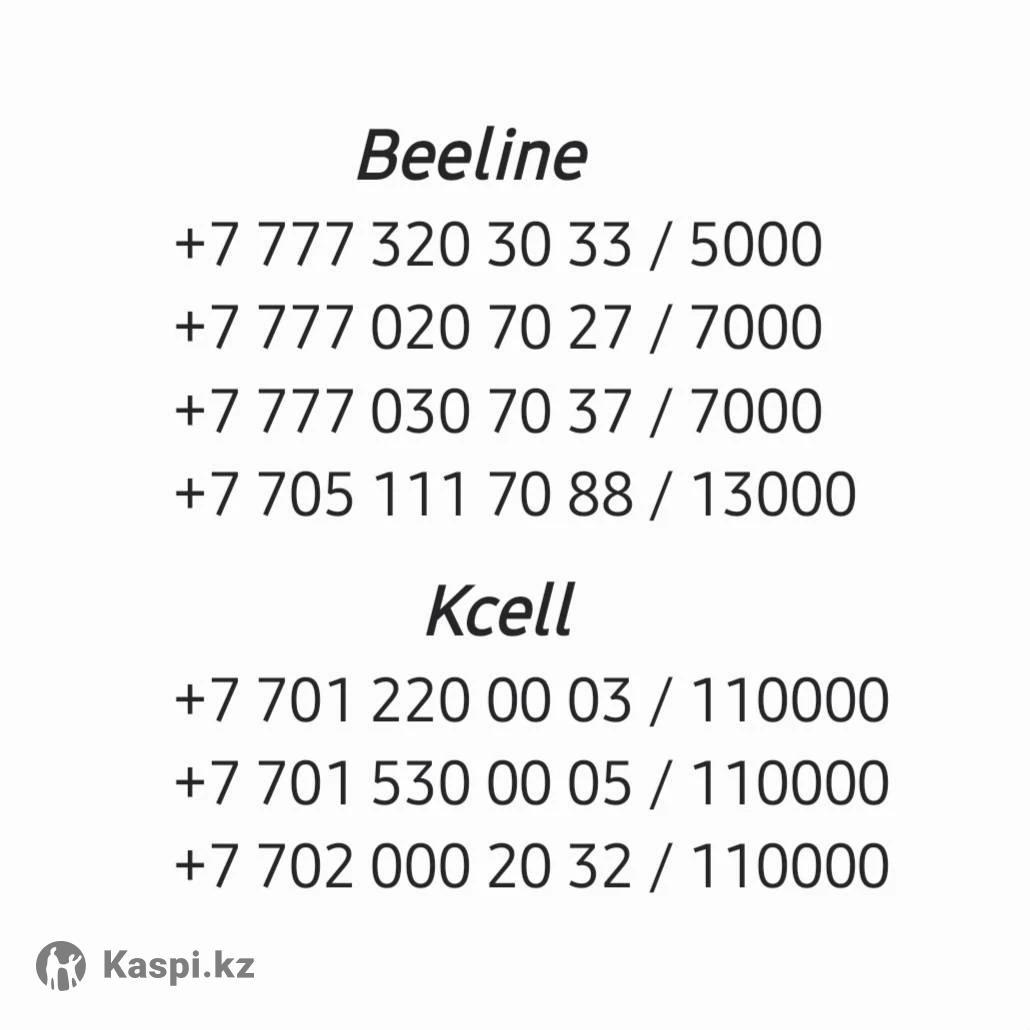 Новые номера Kcell и Beeline. Не использовались. Цены указаны на фото. Можно переоформить в любом городе. Так же отправить eSim. Торга нет. Обмен не интересует.