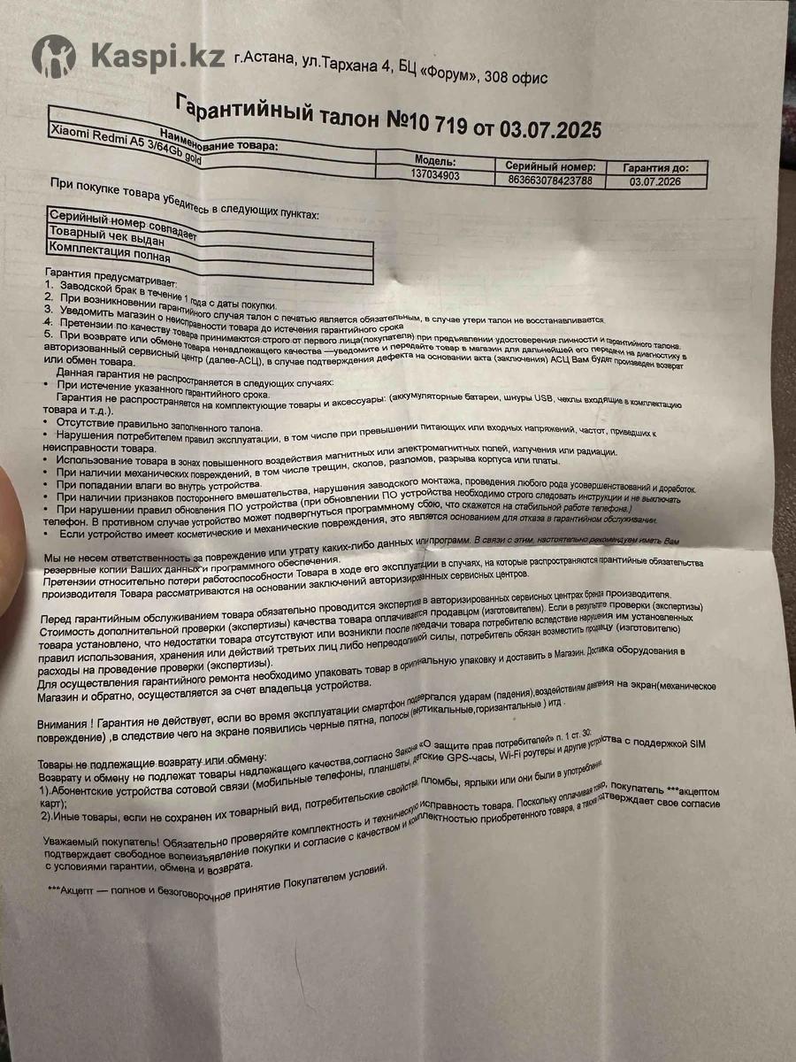 Продам новый Xiaomi Redmi A5 64GB Телефон абсолютно новый, не использовался. Характеристики: •Экран 6.52″ •Память 64 ГБ •Поддержка 2 SIM-карт •Камера 8 МП •Аккумулятор 5000 мАч •Поддержка 4G •Слот для карты памяти В комплекте: •зарядное устройство •чехол Подойдёт для подарка или личного пользования. Все работает отлично.