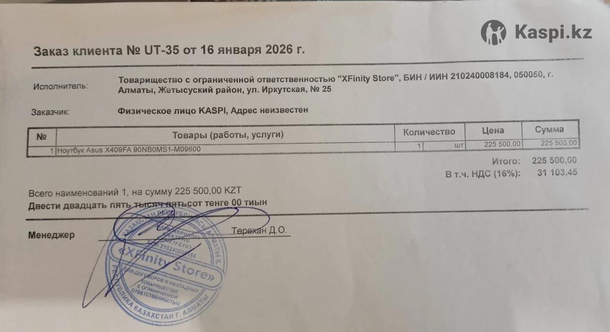 Абсолютно новый ультрабук от Asus. Был куплен 16.01.26. За 225 500тг Ещё на гарантии. В подарок идут мышка,сумка, охлаждающая подставка. Полностью готов к работе. Все необходимые программы и утилиты установлены. Подсветка клавиатуры. Легкий и компактный,Дисплей NanoEdge, Технология SuperBattery (Защита аккумулятора) Батарейка держит заряд примерно 5 часов. Всего 14 циклов зарядки. 1)Получите более широкий взгляд на мир Дисплей NanoEdge обеспечивает ASUS X409 обширную область экрана для приятного 2)Стильный и портативный С общим весом всего 1.5 кг 3)Насыщенный кристально чистый звук ASUS SonicMaster - это сочетание аппаратного, программного обеспечения и настройки звука, разработанное с целью предоставить вам наилучшее качество звука Характеристики: Экран: 14 Процессор: Intel Core I3 10110U 2.10GHZ Оперативная память: DDR4 8GB, расширяется до 16GB Память: 256 SSD Видеокарта: Интегрированная (Intel HD Graphics) Порты и связь: USB 3.2, USB 2.0, HDMI, RJ-45, Wi-Fi, Type-S. Bluetooth, 3.5mm jack.