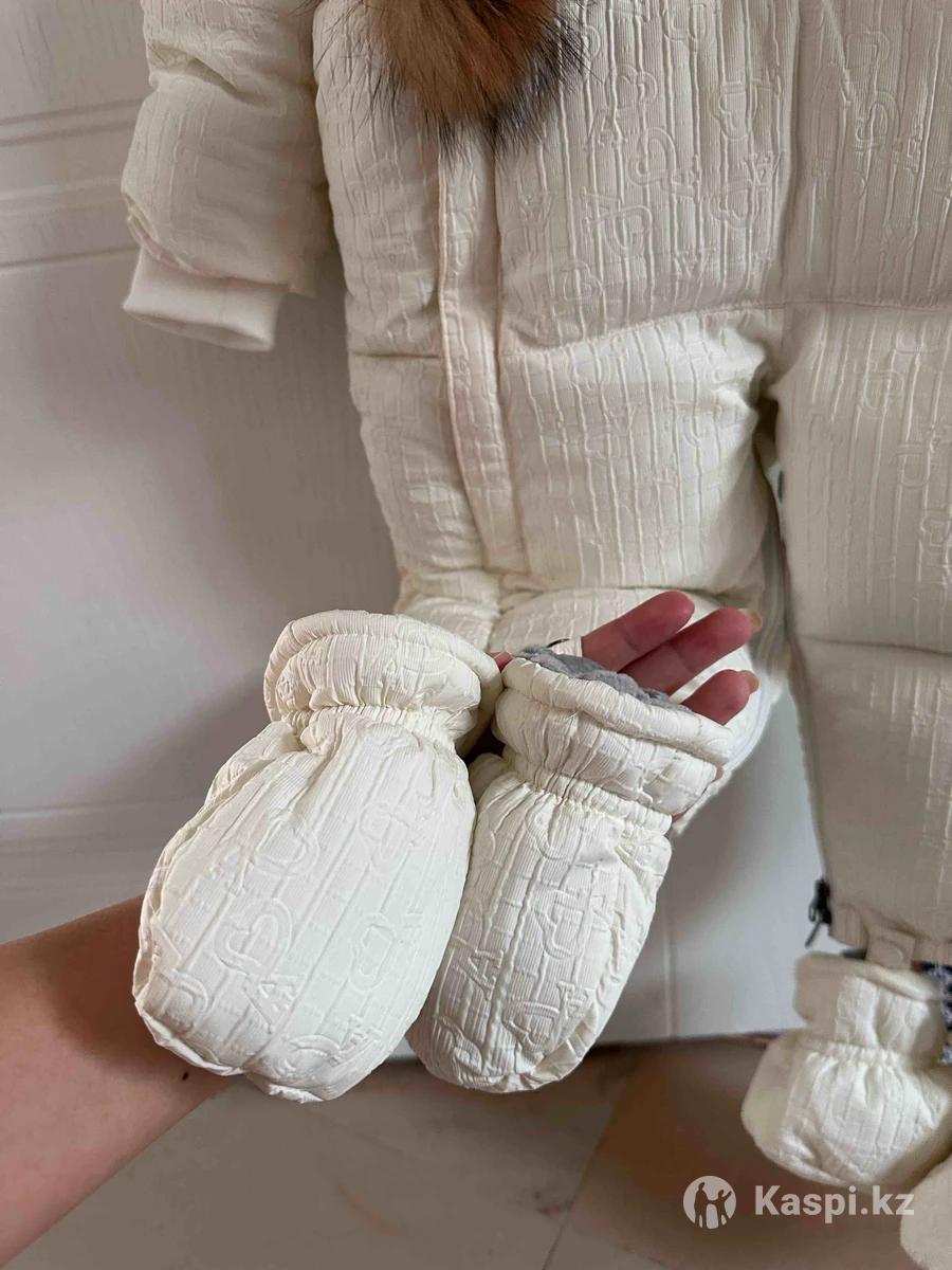 – Теплый зимний трансформер: можно как комбинезон и как конверт. – Подойдет примерно на 2–3 года (нам на 1.4 еще большой). – Цвет молочный, очень красивый. – В комплекте варежки и пинетки. – Полностью закрывает ребенка, отличная защита от холода. – Мягкий, удобный, качественный, оригинал.