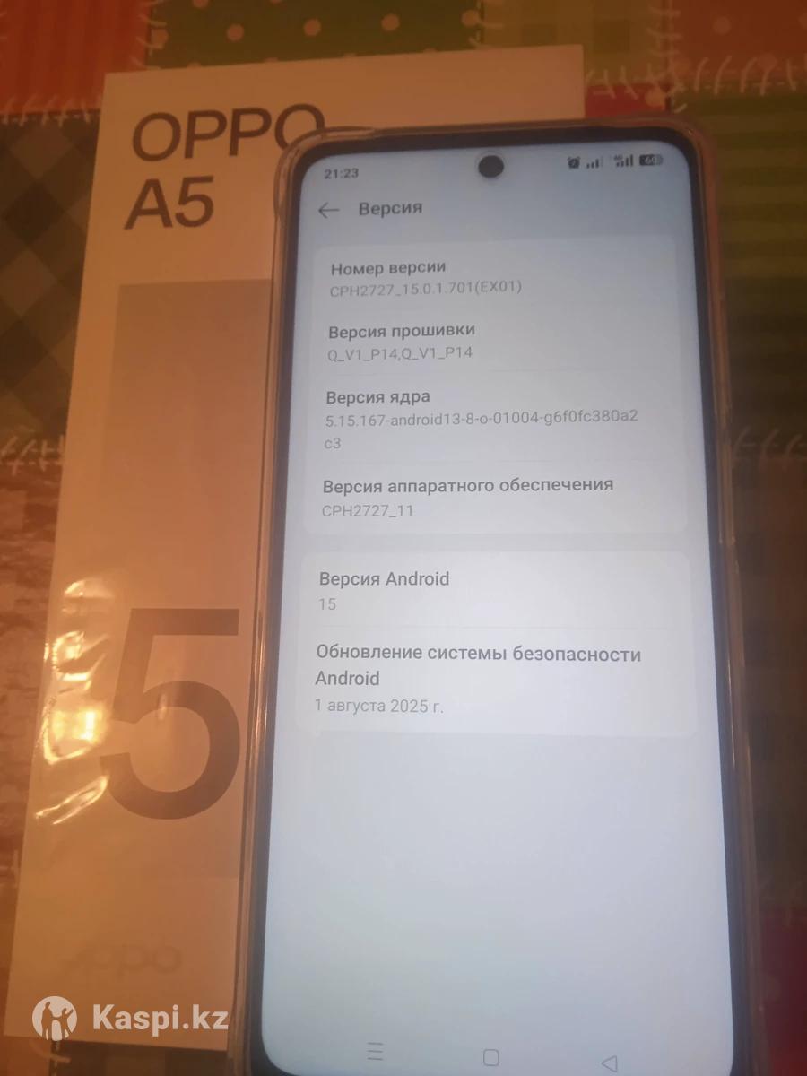 Новый мощный 8миядерный смартфон с большим экраном- Oppo A5 2025года выпуска по акции. Водонепроницаемость и ударопрочность. Память-256гб, ОЗУ-8гб+8гб, мощная батарея-6000мегаАмпер, чёткая двойная камера-50мпкс, удобный боковой отпечаток пальца, распознование лица, бесконтактная оплата телефоном-NFC, встроенный искуственный интеллект для редактирования фотографий. Полный комплект документов, гарантийный талон, зарядное устройство, защитное стекло и гелевый чехол.