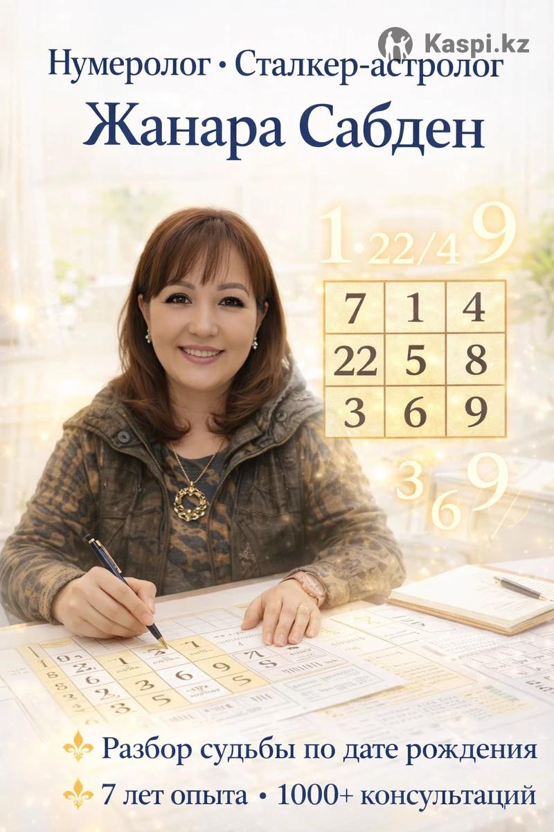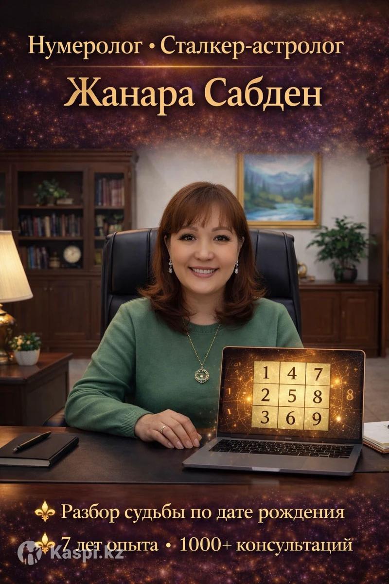 🔮 Нумеролог Алматы | Разбор судьбы по дате рождения Сталкер-астролог Жанара Сабденова ✨ Более 7 лет опыта ✨ Более 1000 консультаций Нумерология помогает понять предназначение, таланты и важные периоды жизни. На консультации вы узнаете: ✨ предназначение по дате рождения ✨ сильные стороны и таланты ✨ финансовый код и возможности заработка ✨ карьерный рост и реализацию ✨ периоды удачи и важных событий ✨ совместимость в любви и партнёрстве ✨ прогноз на будущие периоды жизни Консультация помогает лучше понять себя, раскрыть потенциал и принять важные решения. 📍 Консультации проходят: • онлайн • офлайн в Алматы 📍 Адрес офиса: Алматы, ул. Тимирязева 42, корпус 6 (район Атакент) ⏳ Длительность консультации: 1 час 💰 Стоимость консультации: 15 000 тг 📞 Запись по телефону: +