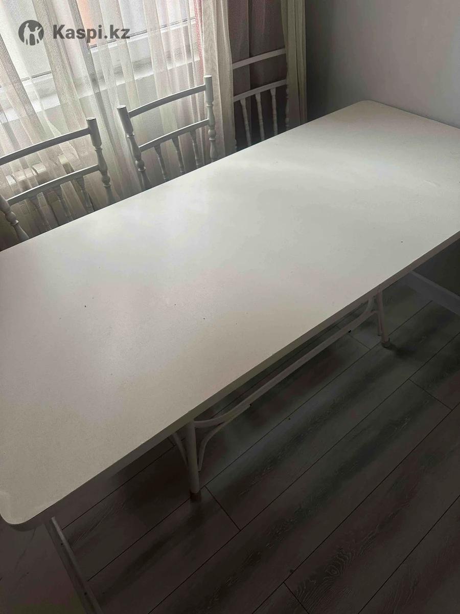 Продается прямоугольный стол с железными ножками. •Цвет: белый • Прочный и устойчивый •Есть следы использования (видно на фото), но полностью рабочий Подойдет для кухни