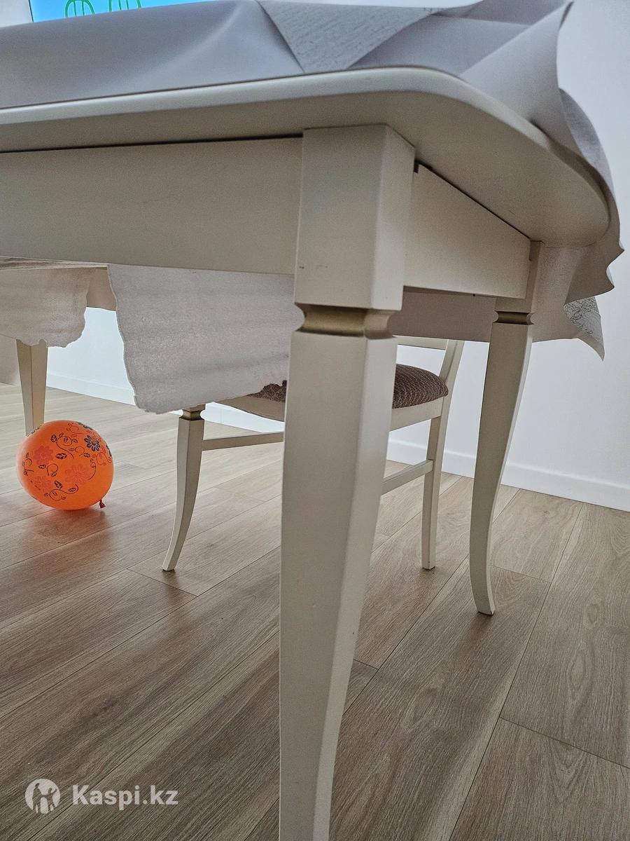 Продам обеденный комплект бренда CARA Hardwood. (Бренд премиум качества] Стол и 6 стульев. Размер стола 160×90 см, раскладывается до 200 и 240 см. Цвет — слоновая кость. Покупали за 650 000 тг. Требуется химчистка стульев. Цена: 120 000 тг. Срочно! Торг Продаём в связи с переездом. #стол #стулья #слоноваякость #классика