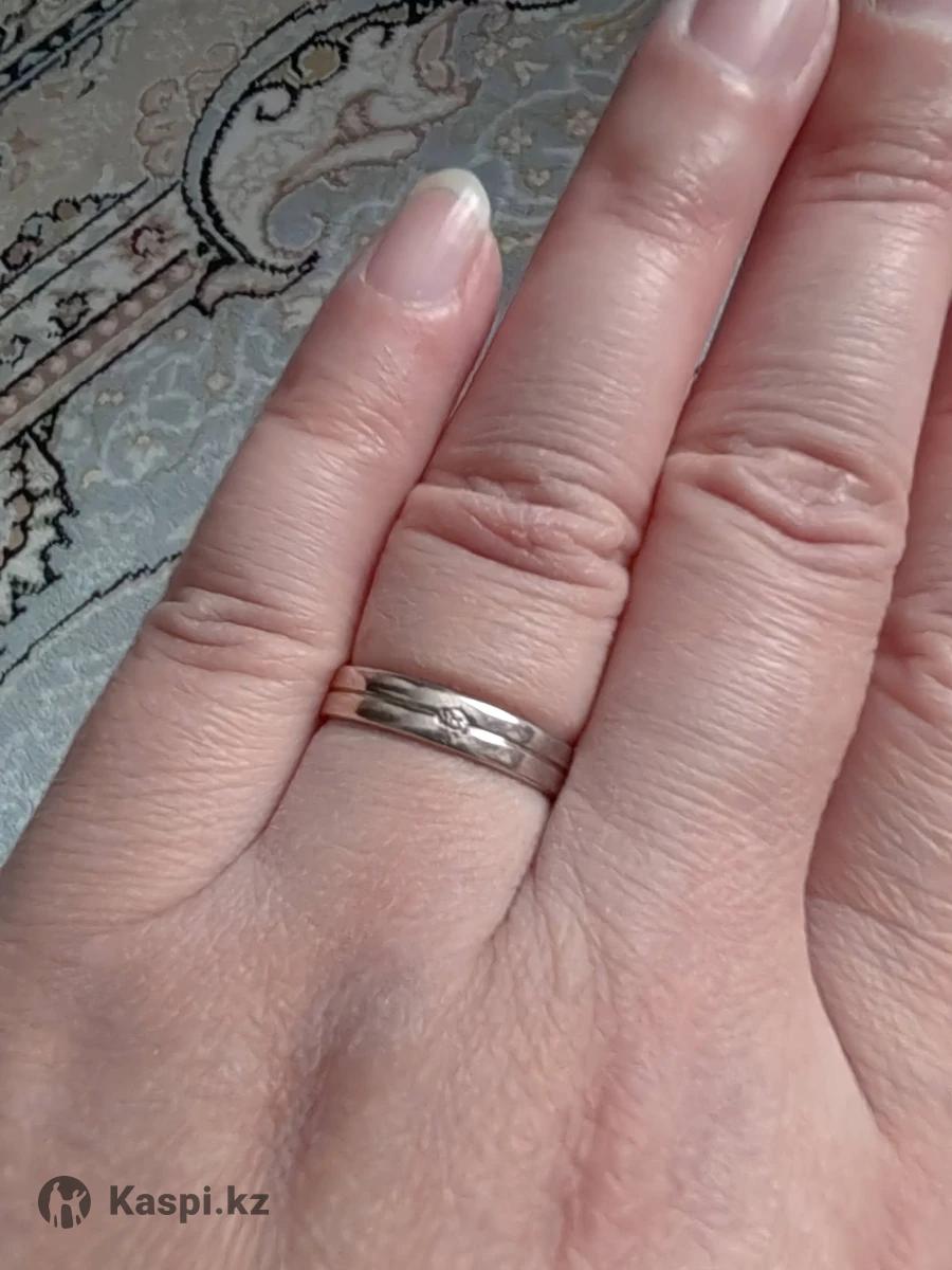 Обручальное кольцо из серебра с бриллиантом. Ручная работа. Размер 17