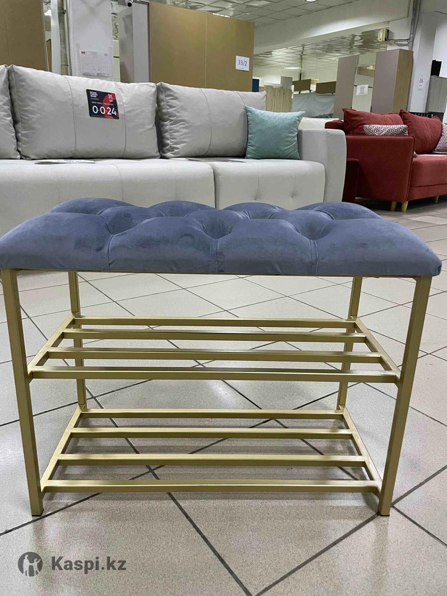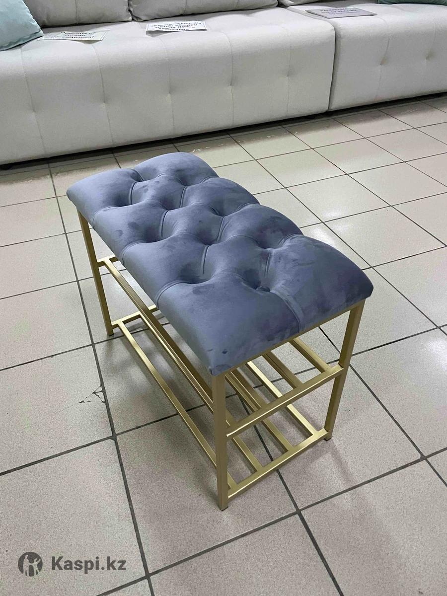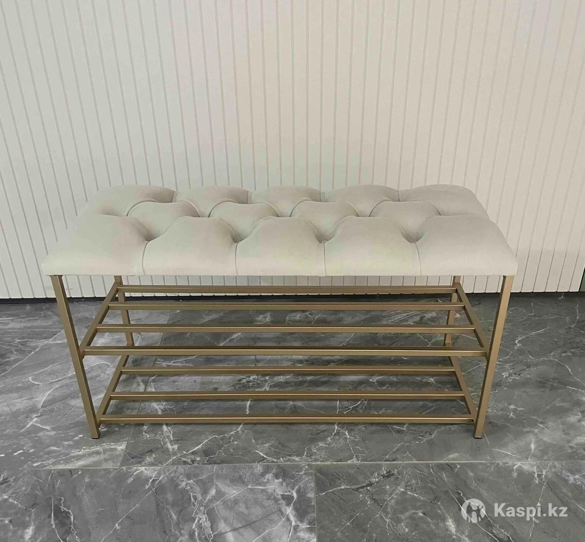 Обувница ЭтажеркаБанкеткаПолка для обувиПодставка для обуви В стиле лофт, современная банкетка, обувница в прихожую, офис. Банкетки в наличии. Размер 60×30×48 и 90х35х48. Выполнена из прочного каркаса, выдержит любую нагрузку. Качество на вечно. Расцветки металла: черный, золотистый. Сиденье мягкое, выполнено в каретной стяжке с поролоном.А так же можем изготовить по вашим параметрам. Доставка есть. до двери(по городу) 2500 тенге.
