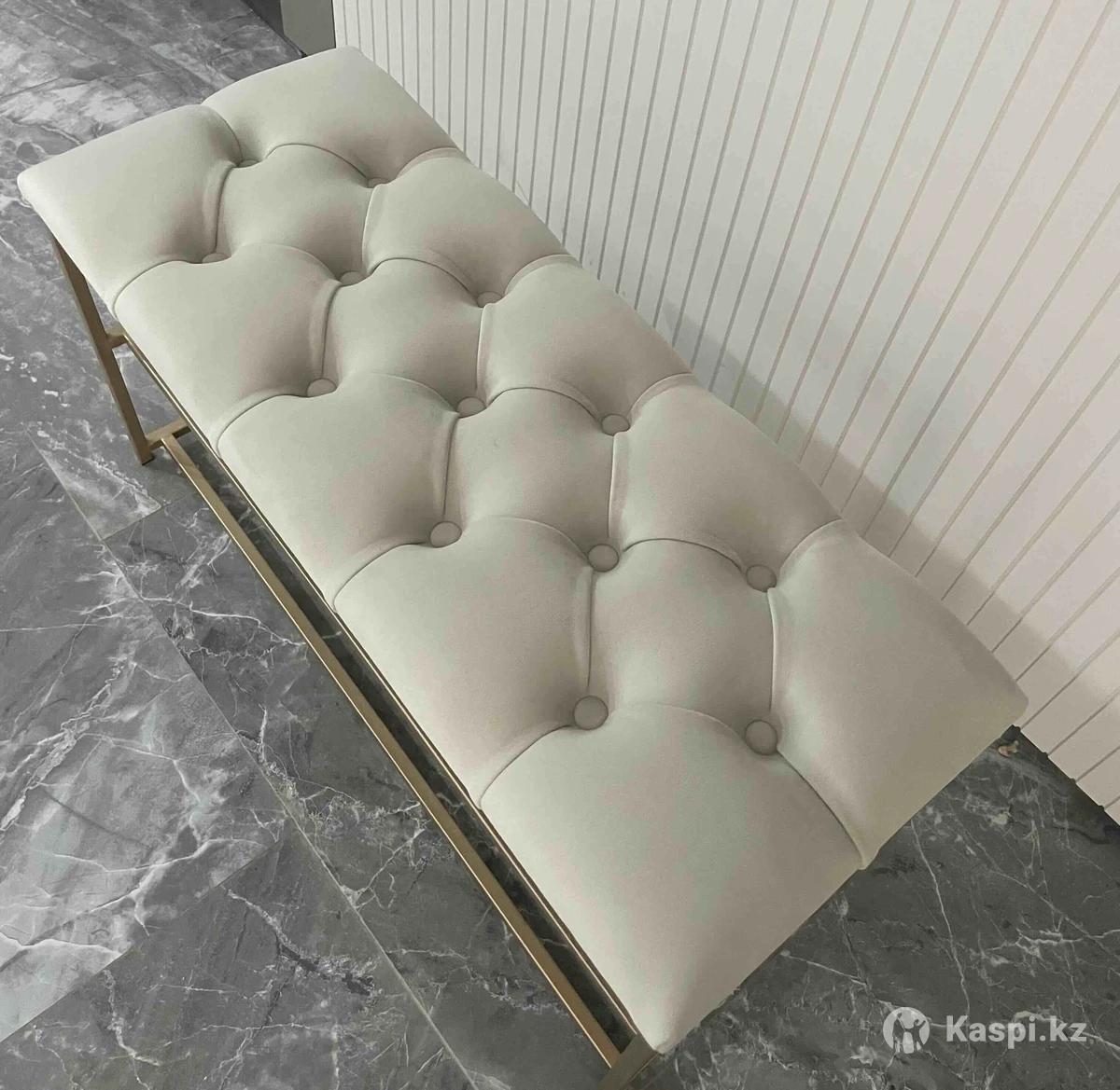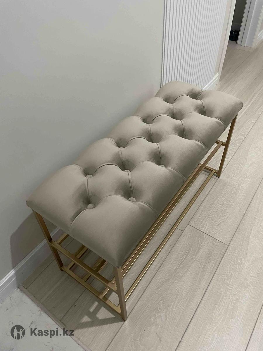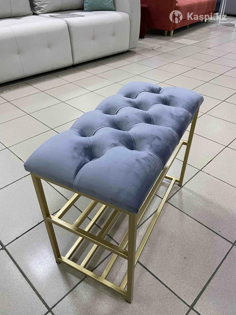 Обувница ЭтажеркаБанкеткаПолка для обувиПодставка для обуви В стиле лофт, современная банкетка, обувница в прихожую, офис. Банкетки в наличии. Размер 60×30×48 и 90х35х48. Выполнена из прочного каркаса, выдержит любую нагрузку. Качество на вечно. Расцветки металла: черный, золотистый. Сиденье мягкое, выполнено в каретной стяжке с поролоном.А так же можем изготовить по вашим параметрам. Доставка есть. до двери(по городу) 2500 тенге.