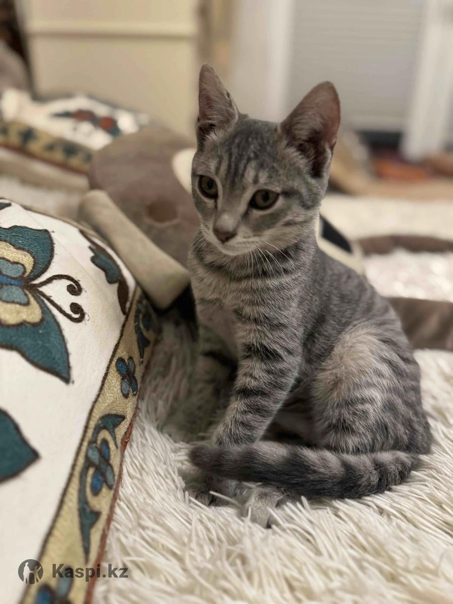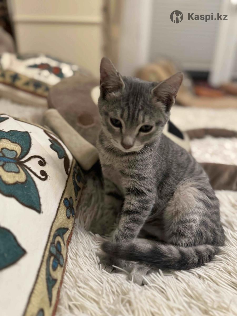 Котенок, девочка, 4 месяца, серо голубого цвета, к лотку приучена , игривая, чистенькая, здоровая.