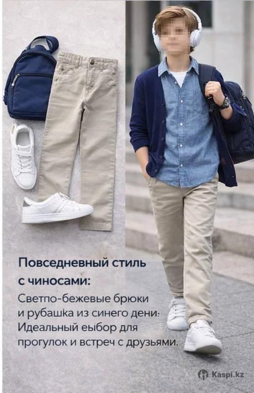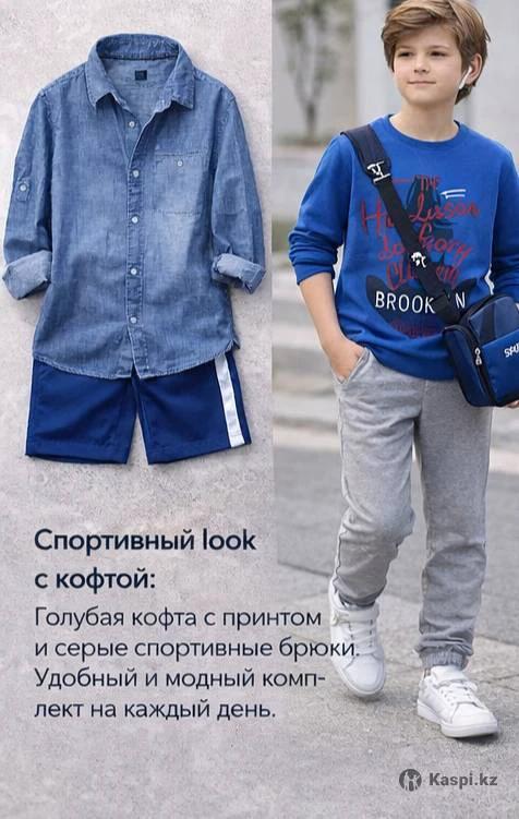 Новые вещи, с этикетками. На возраст 13-14 лет Не успел выносить. Качество хорошее, куплены в АОЭ Синий Лонг новый - Лонг в полоску новый - Бежевые брюки -новые Рубашка деним-новая Рубашка с коротким рукавом новая Рубашка с банданой новая- Пиджак летний, один раз надевал.. За все 30000 тг