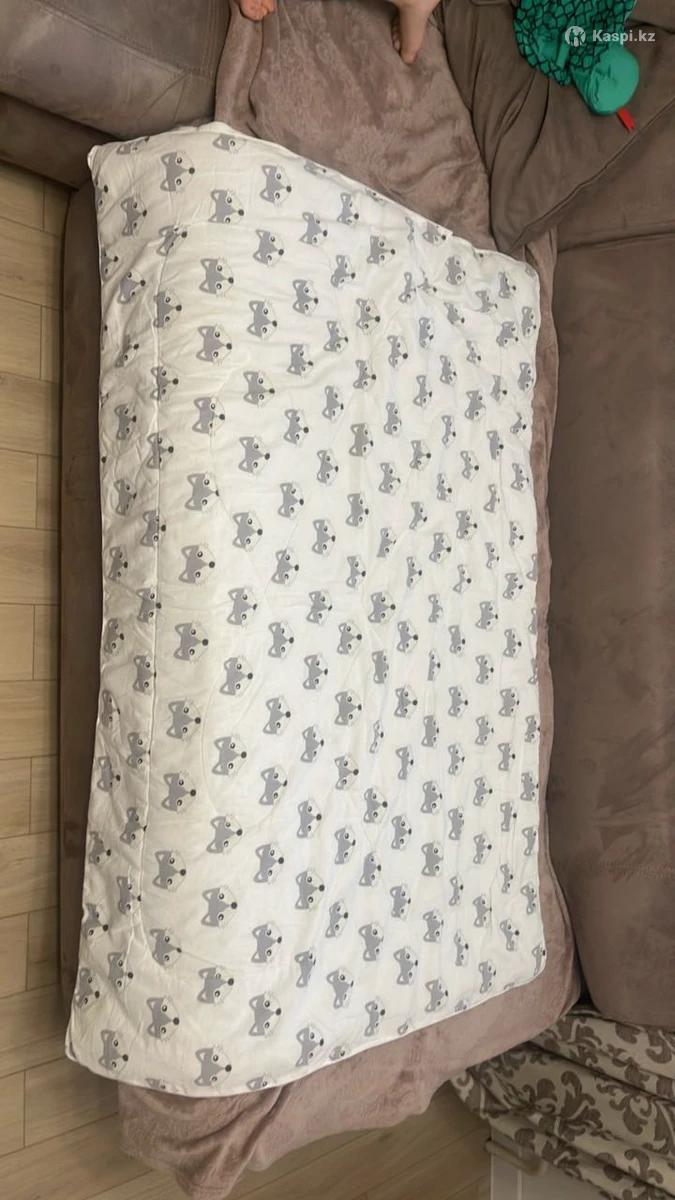 Всесезонное детское одеяло . Размер: 110 х 140 см. Внешний чехол: 100% хлопок. Наполнитель: бамбуковое волокно и искусственный лебяжий пух (гиппоаллергенный). Стирается легко на ручной стирке и быстро сохнет . Использовали зимой, теплое и мягкое .