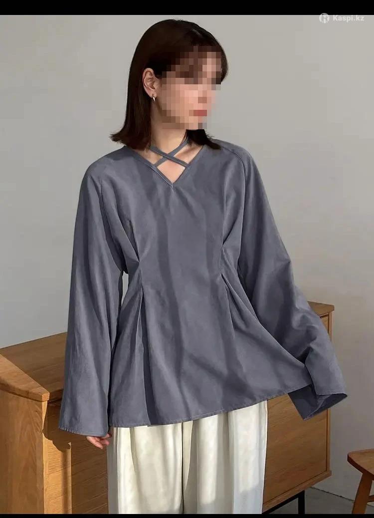 Однотонный топ с V-образным вырезом, рукавами-колокольчиками и подчеркивающей талию лямкой для женщин размер 38-44