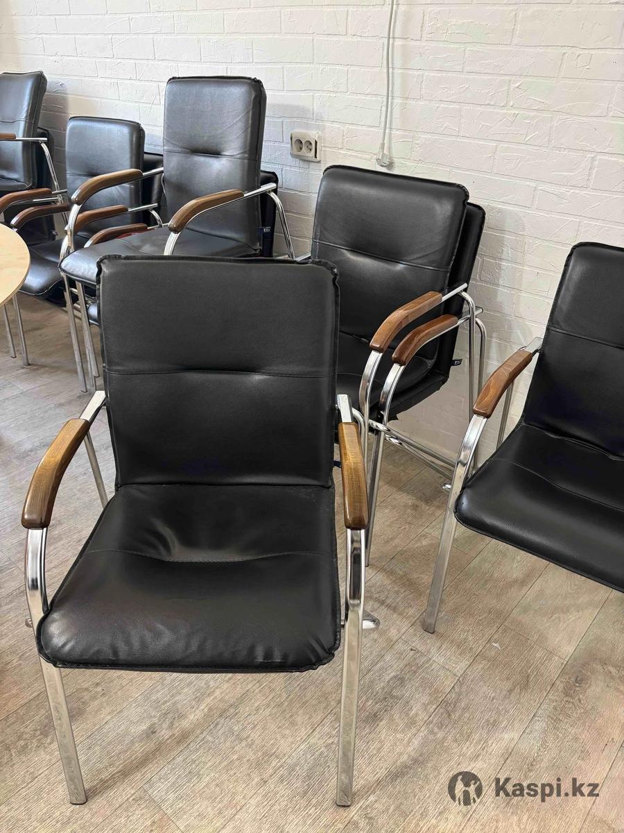 Стулья офисные, есть 5 штук. В хорошем состоянии, есть маленькие потертости, но сохранились хорошо, использовали около года, покупали по 40000 каждое, продаем за 15000тг если одно покупаете, если заберете 5шт то по 10000 отдадим. Самовывоз. Район Куратова Ташкентская (Райымбека)