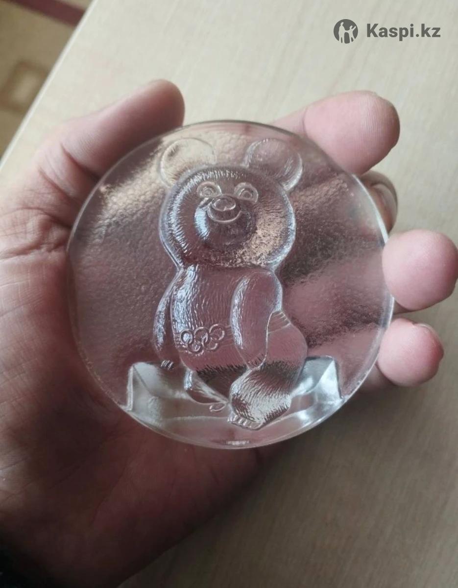 Плакетка Олимпийский мишка,стекло,редкий