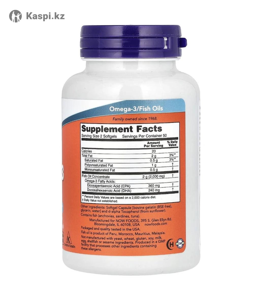 Начни день с заботы о себе Одна капсула Омега-3 — это 1000 мг чистого рыбьего жира, поддержка сердца, сосудов и мозга. Молекулярная дистилляция сохраняет все полезное, исключая лишнее. Омега-3 от фирмы Now- здоровье, которому можно доверять! В баночке 100 капсул (на курс приема 50 дней). Доступен самовывоз, Яндекс-доставка Так же в наличии витамин Д3, витамин С, цинк, мелатонин.