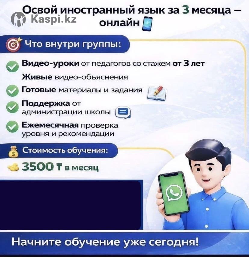 🏫 Онлайн школа Overs school Открыт набор в группу по английскому/немецкому! 🚀 Освой иностранный язык за 3 месяца всего за 3500 тг/месяц 🎯 Что вас ждет: •Видео уроки от педагогов со стажем от 3 лет •Живые занятия и поддержка администрации •Ежемесячная проверка уровня и помощь в прогрессе 🎁 Акция! Первые 3 дня бесплатно