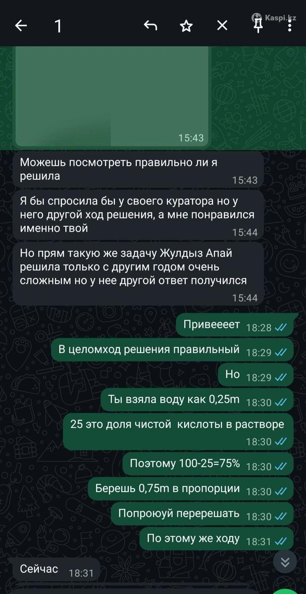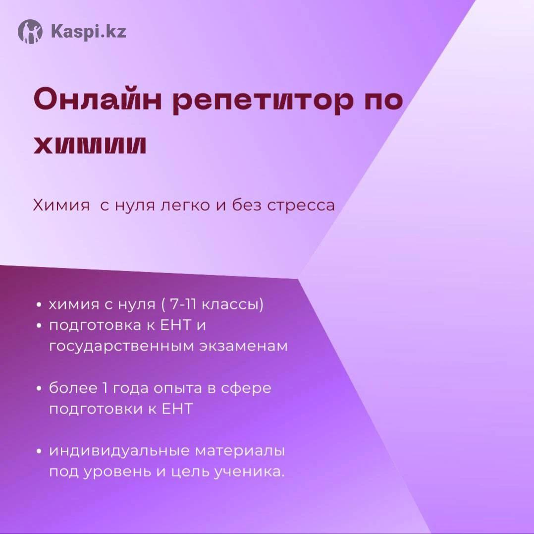 Меня зовут Алина. Я студент медицинского университета, обучающийся на полном гранте. На ЕНТ набрала 46/50 по химии. Окончила специализированную школу-лицей. Обладатель "Алтын белгі". Призер различных областных олимпиад по химии.Провожу индивидуальные занятия по химии с учетом успеваемости ученика ( от 7 класса вплоть до подготовки к ЕНТ). В течение года готовила учеников к ЕНТ. Решение практических задач разной сложности. Усвоение теоретического материала. Объясняю сложные темы через простые аналогии и примеры из жизни.Комбинируют теорию, практику (разбор задач) и мини-тесты для закрепления. Подбираю индивидуальный план обучения для каждого ученика. Уроки проводятся через платформу Google meet.
