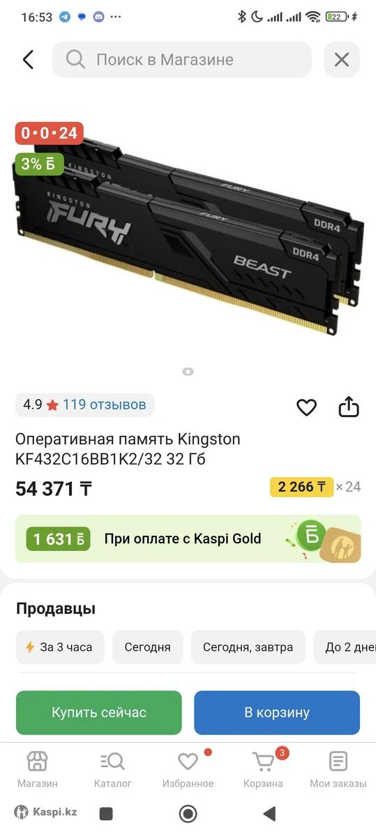 Продаю оперативную память Kingston FURY Beast Black (KF432C16BB1K2/32) 32 ГБ (2x16 ГБ) DDR4, 3200 МГц, CL16. Практически новая, вставлялась в ПК один раз, но не подошла к моей материнской плате. Состояние идеальное, в оригинальной упаковке. Объем: 32 ГБ (2 модуля по 16 ГБ) Частота: 3200 МГц Тайминги: CL16-18-18 Поддержка Intel XMP Низкопрофильный радиатор для охлаждения Пожизненная гарантия от Kingston Идеально для игровых ПК, рабочих станций и апгрейда системы. tg