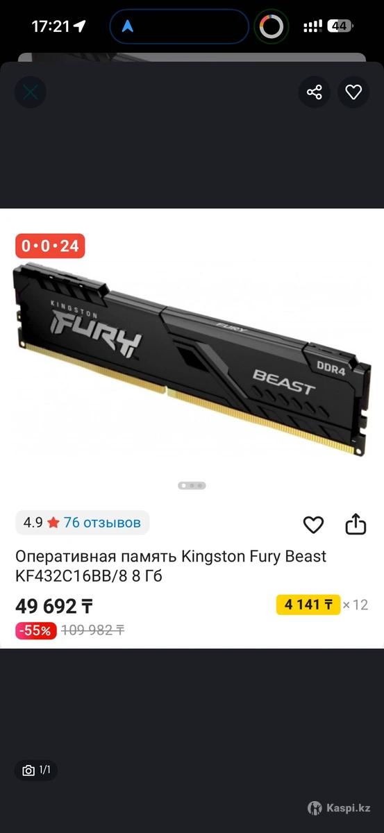 Fury новый колданылмады каспи магазинде 50к турады DDR4 DIMM 8GB