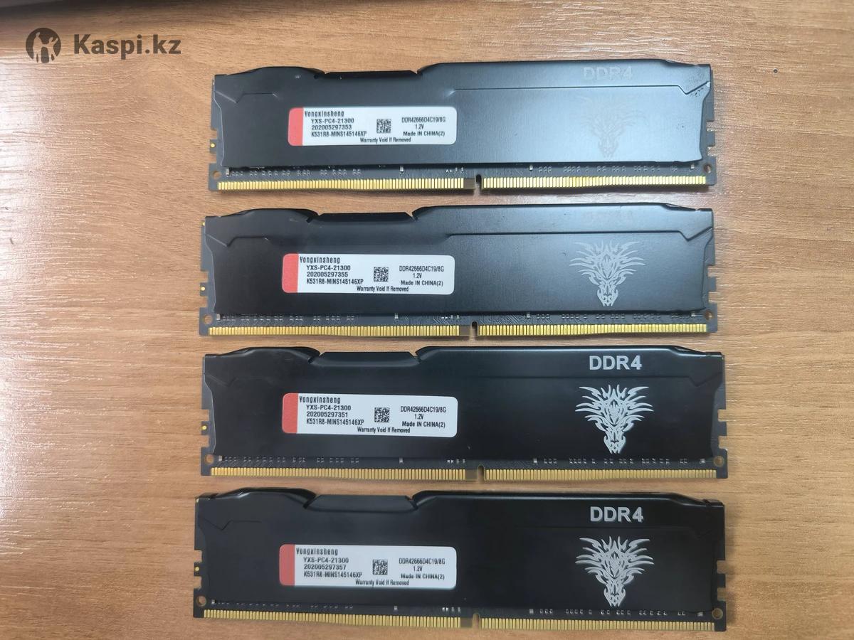 ОЗУ 32GB (4×8GB, DDR4-2666). Черные алюминиевые радиаторы на всех модулях RAM. Объем памяти одного модуля 8 гигабайт. Все планки дуалранковые, чипы с двух сторон, 16 banks. Полностью протестированы. Продаю комплектом 4 модуля в одни руки. Причина продажи - апгрейд.