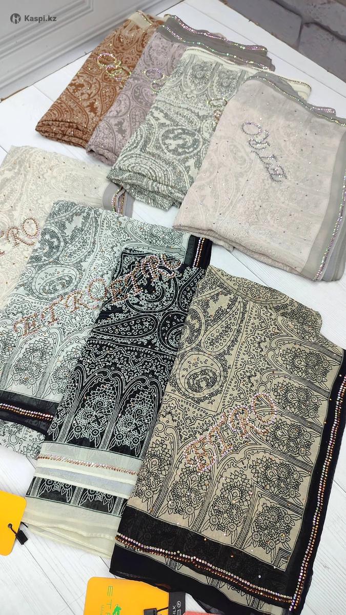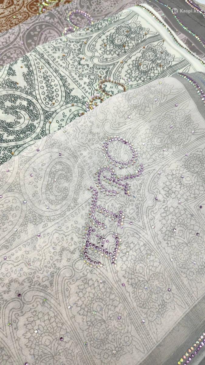 Платок шелк тонкий 100х100 со стразами.