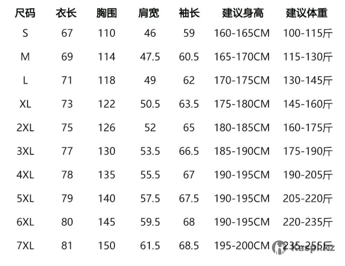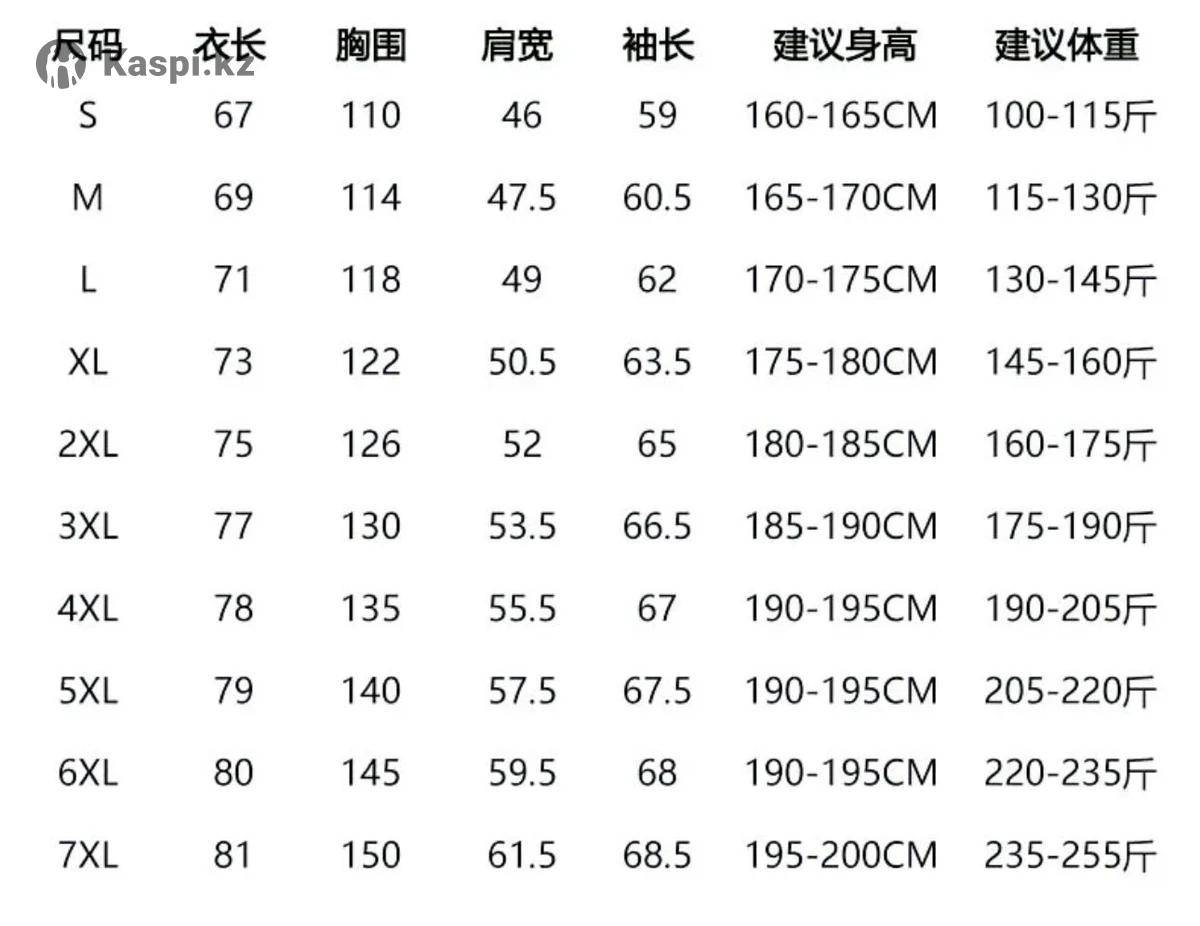 Заказал из Китая у проверенного продавца. Качество шикарное! За такую цену в Казахстане не найти. Продаю, т.к. размером ошибся (на фото видно). Отдам по себестоимости. Подойдет для людей ростом 165-170см. В приложенном фото можете посмотреть таблицу размеров, эта куртка - М.