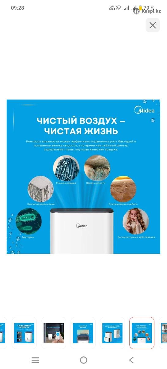 Осушитель воздуха Midea MDDF-20DEN7. Брала для подсушивания квартиры после ремонта в холодное время года. Удобно даже сушки вещей, поддержания нормального уровня влажности дома, чтобы избежать сырости и плесени. О нем только хорошие отзывы. Торг. Можно в аренду, сутки 5000, не менее 2 суток.