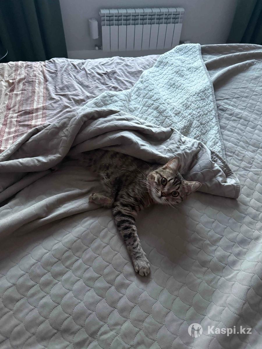 Когда мы его покупали, нам сказали, что он бенгал, но окрасу не совсем бенгал) мы думаем, что смешанный бенгал с кем-то. Тем не менее, окрас очень красивый. Кот привит и кастрирован, все вовремя делали. Лоток, миски, корм, лежанка, когтеточка все вместе отдадим. Ему 2 года, откликается на свое имя. Отдаем в связи с тем, что появилась аллергия(( шерсти не так много, из регулярного нужно только стричь когти и чесать шерсть) для этого все приспособления тоже есть. Лучше писать