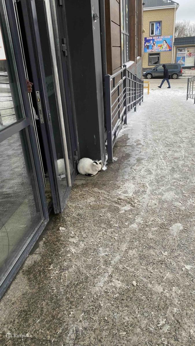 Белый кот с черными пятнами уже месяц сидит у входа в супермаркет. Спокойный, добрый, видно, что был домашний. Сейчас холодно, он сидит прямо у двери, чтобы погреться. Очень нужен дом или хотя бы временная передержка.