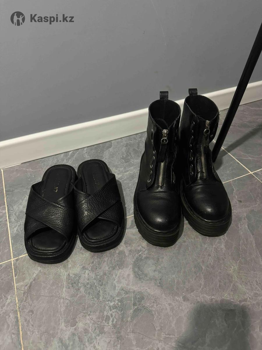 Продам женские демисезонные ботинки 37размера, имеются небольшие потертости, целые, состояние хорошее, покупала в пулбир. Тапочки 37р натуральная кожа, удобные. Возможно подойдут на 37,5 Самовывоз турксибский район или жибек жолы. Не звонить, писать только в
