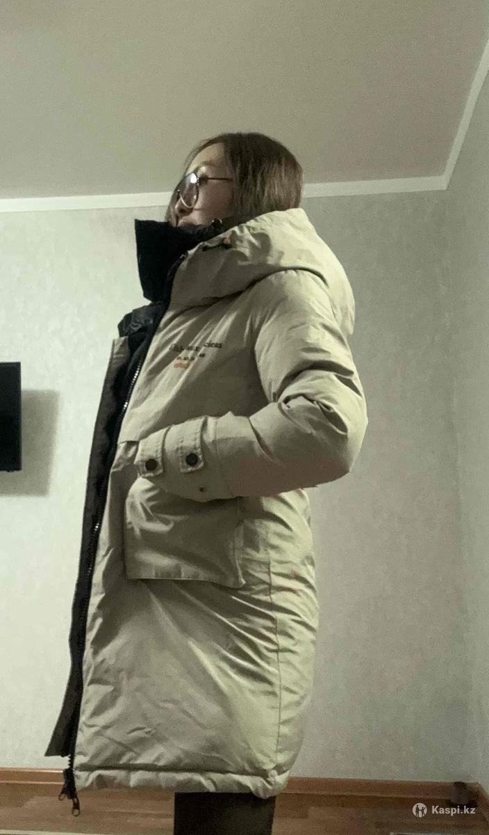 Бежевый пуховик ,прикрывает попу ,спортивного стиля ,двухсторонний