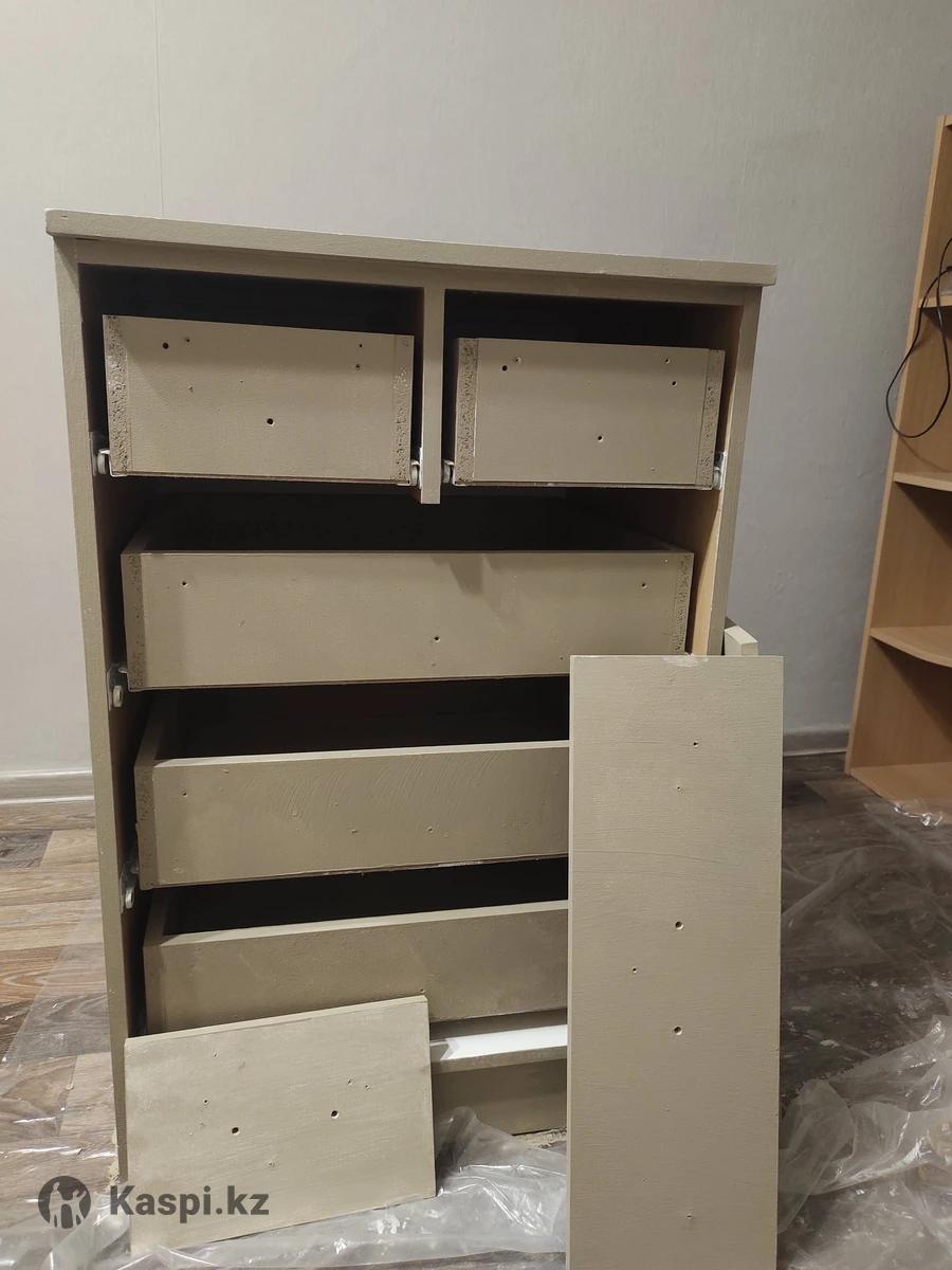 Покрашен на один слой. Торцевая часть на ящики есть. Ручки тоже Целый, крепкий