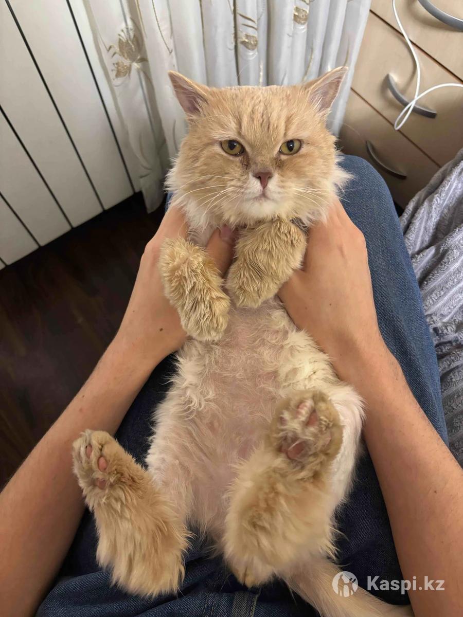 Нашла кота на улице в декабре, был длинношерстным, из за жизни на улице образовались колтуны и пришлось его брить налысо, оставила у себя, позже оказались проблемы со здоровьем, но мы всё вылечили и он абсолютно здоров и обработан Его назвала Персик, ему 5 лет, он очень ласковый и любвеобильный, очень послушный