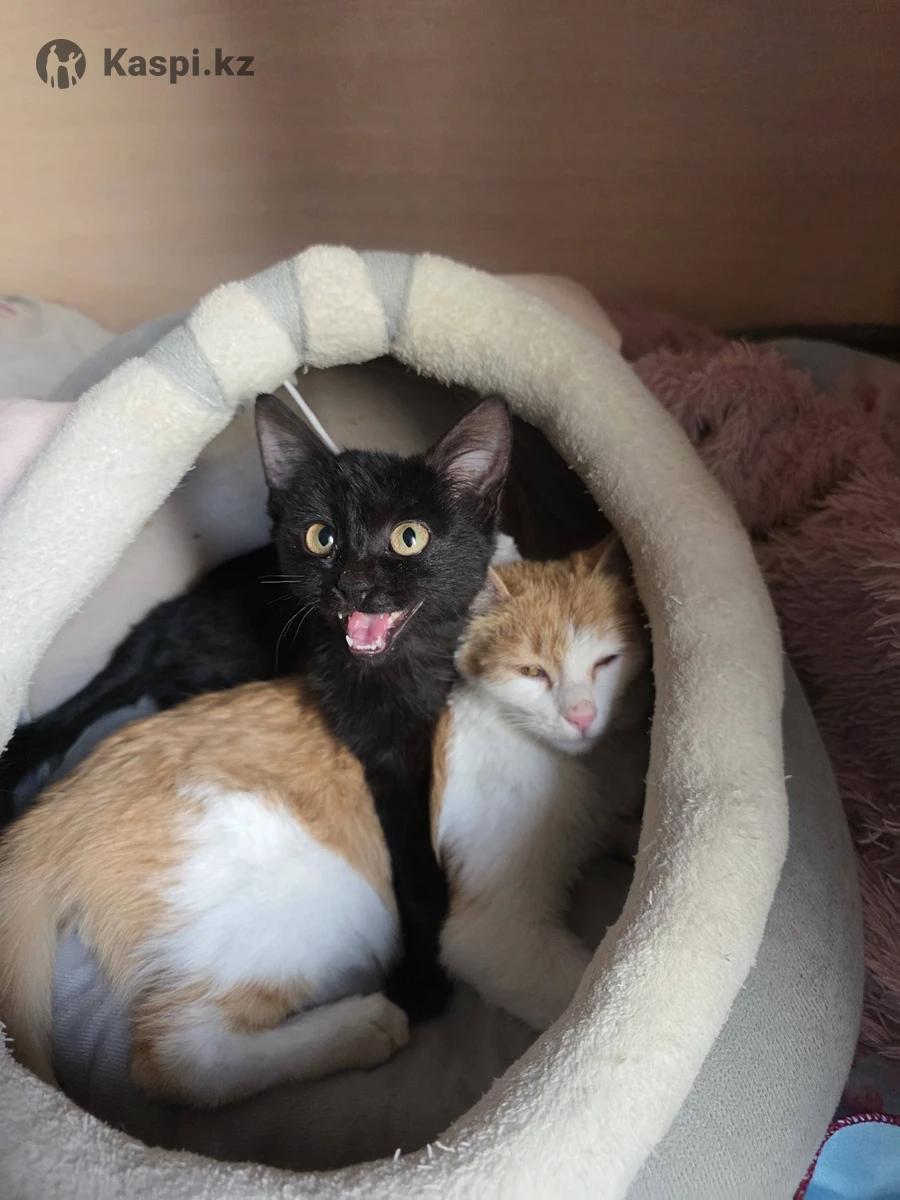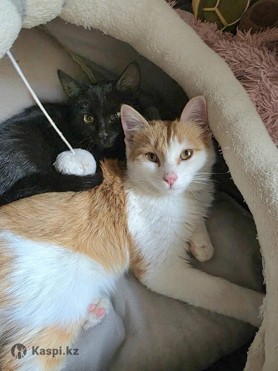 Двое котят бело рыжий мальчик и черная багира девочка