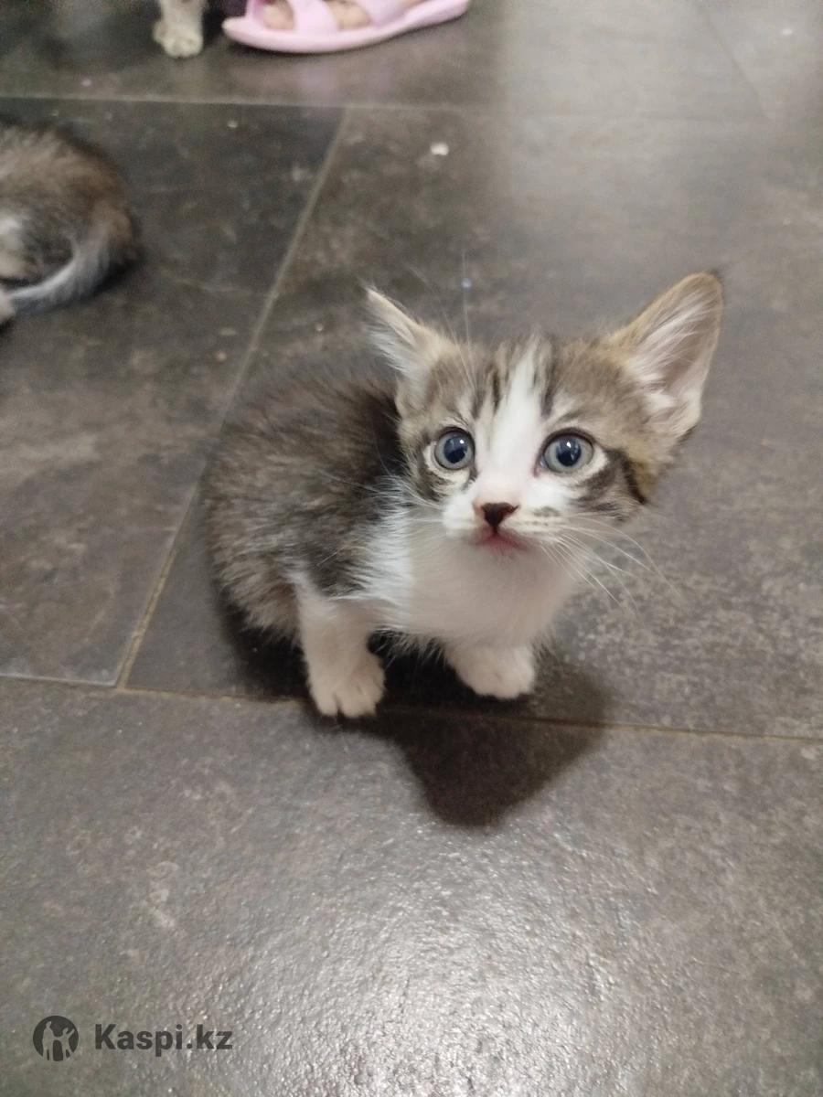 Отдам котят в хорошие руки. Возраст полтора месяца ,кушают сами ходят в лоток ,красивые и умные котята находимся район 1 Алматы