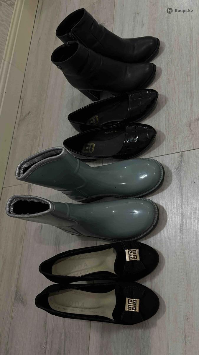 Отдам всю обувь на фото в одни руки за 7000тг. Балетки состояние новых 37р, ботильоны на 37-38р, туфли 37р, резиновые сапоги побольше размером 38-39р брала чтобы с теплыми носками носить. Все в отличном идеальном состоянии