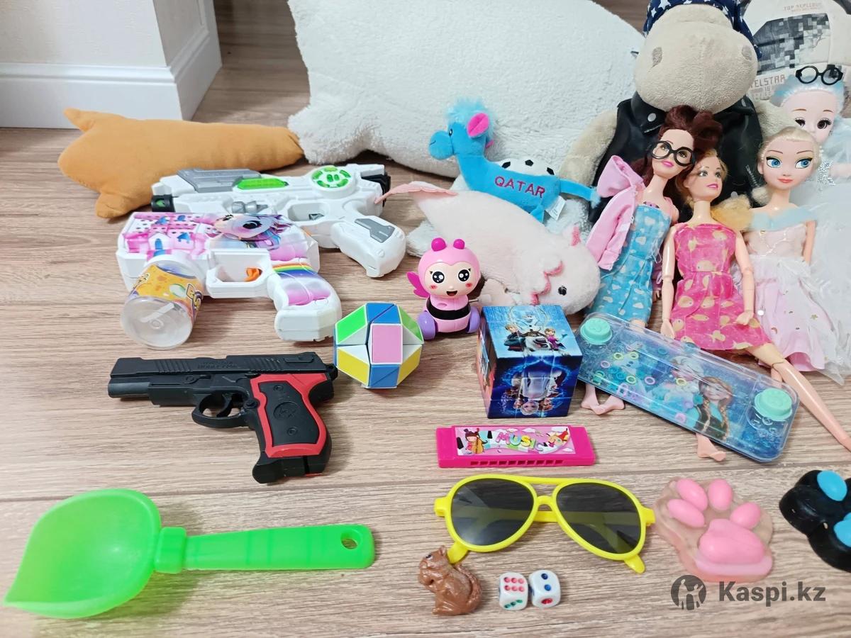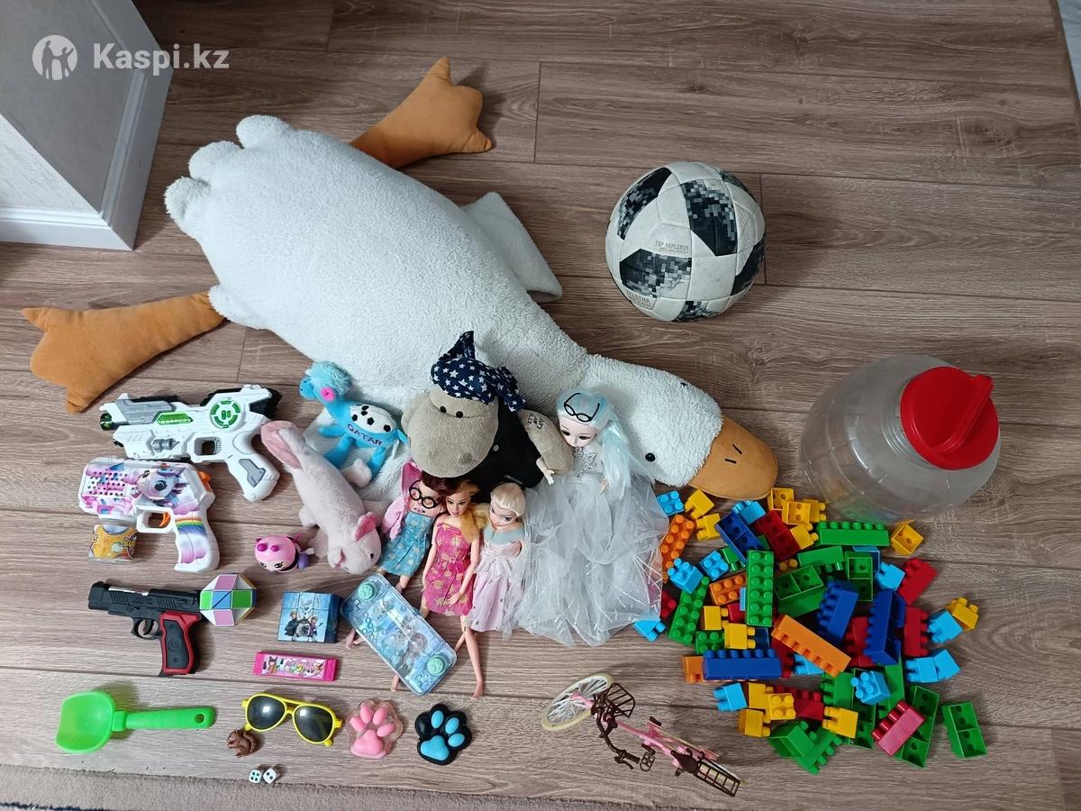Ойыншықтар әр түрлі сатылады: Barbie велосипеды, конструктор өте сапалы 63 бөлшектен тұрады, футбол добы, қаз қуыршақтар, басқа да әртүрлі ойыншықтар 5000 тг.