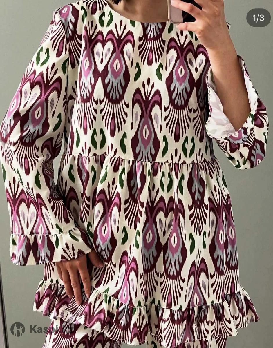 Материал дубайский штапель размер от 42 до 46 даже 48 стандартный, приятно к телу, красивый цвет легкая пышная.